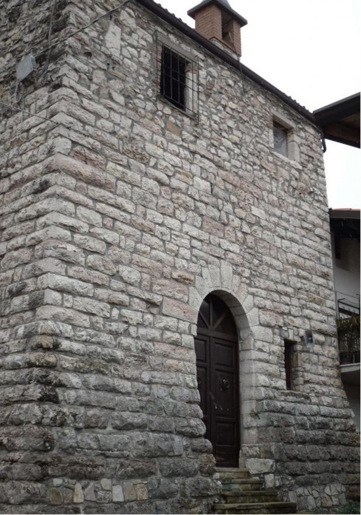 Located outside of the village and visible from the plain, Sant’Ambrogio (St. Ambrose) of Qualino is the most elaborate church along the Volpino coast. It is currently presented in the forms undertaken following the extensions made in the 17th Century and in 1902 on a 15th-Century structure in part preserved and documented by fragments of frescoes inside the building. The two order façade completed by a mixtilinear gable and preceded by a pronaos makes it similar to the parish churches of Branico, Flaccanico and Ceratello; the portal stands out for the quality of the black Riva di Solto stone with inlays.