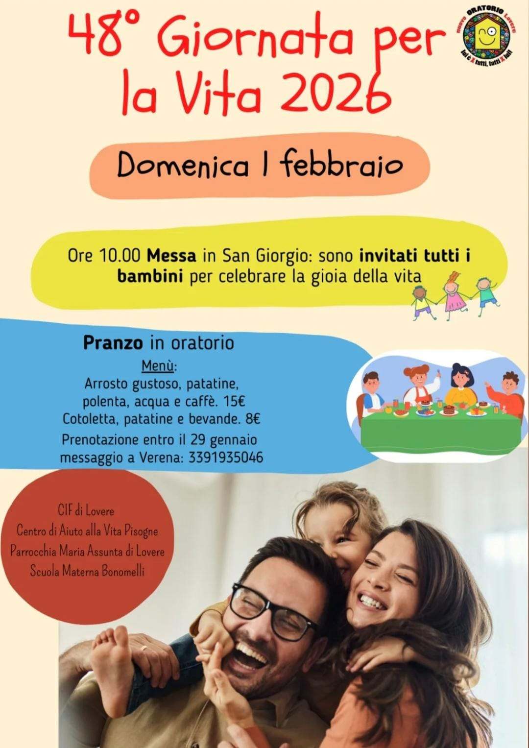 On Sunday 1st February 2026, the Lovere Oratory is organizing the 48th Giornata per la Vita.