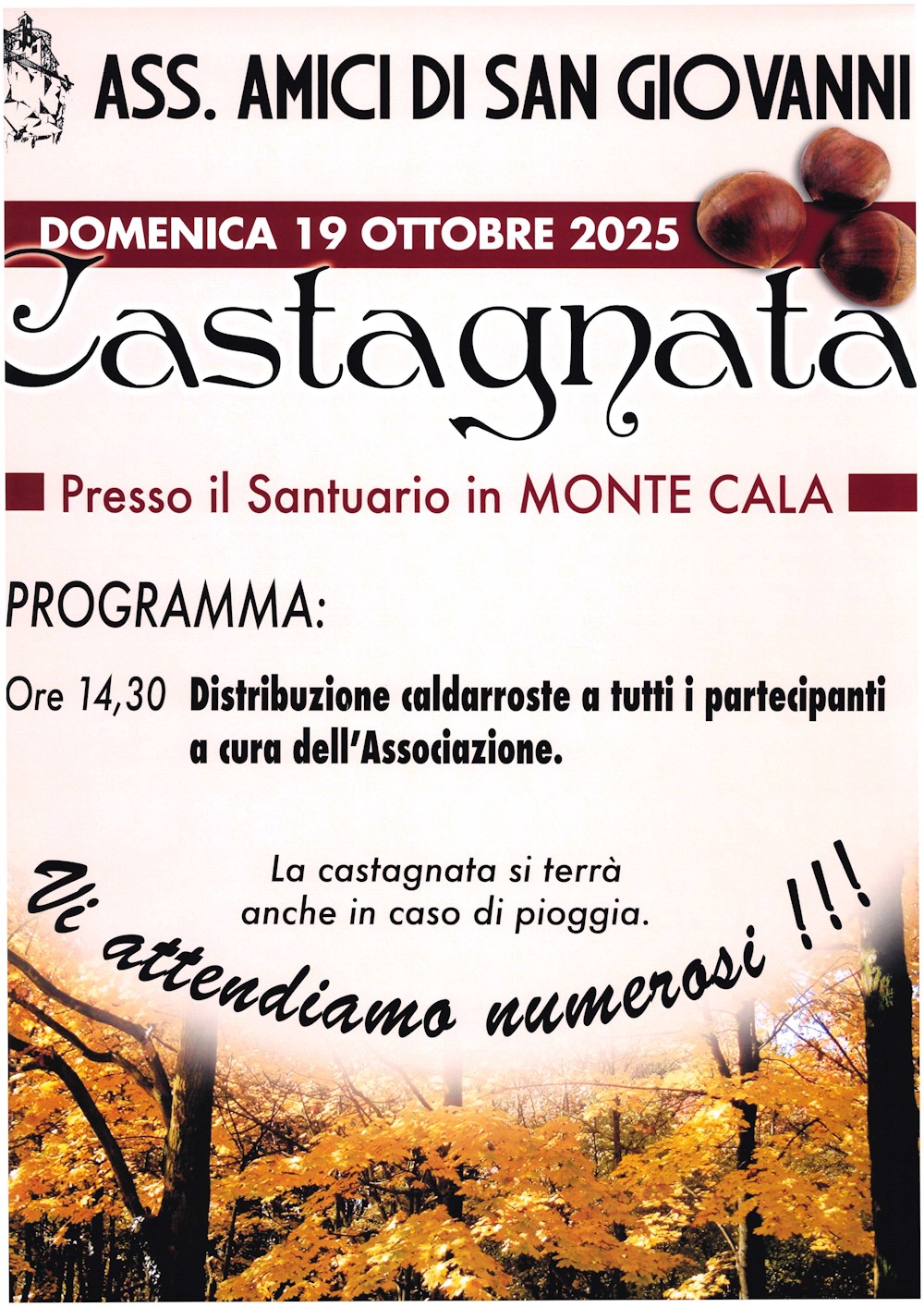 The association “Amici di S. Giovanni” organizes the traditional “Castagnata” on Sunday 19 October 2025 at the Sanctuary of S. Giovanni in Monte Cala in Lovere.