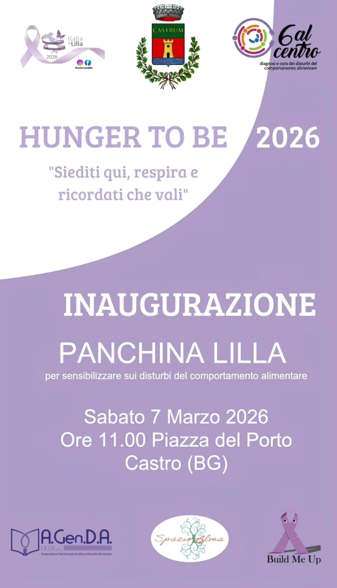 On 7th March 2026, at 11:00 a.m., the inauguration of the “Lilac Bench” a symbol of attention to Nutrition and Eating Disorders, will take place in Castro’s Piazza del Porto.