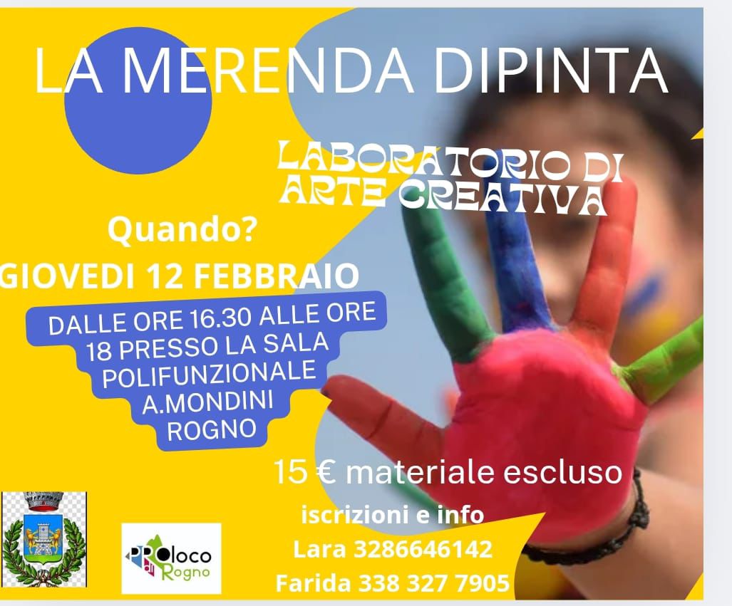 The “La Merenda dipinta” workshop will be held from 4:30 pm to 6:00 pm and includes a snack with friends. The cost of the initiative is € 15.00 (material excluded).
