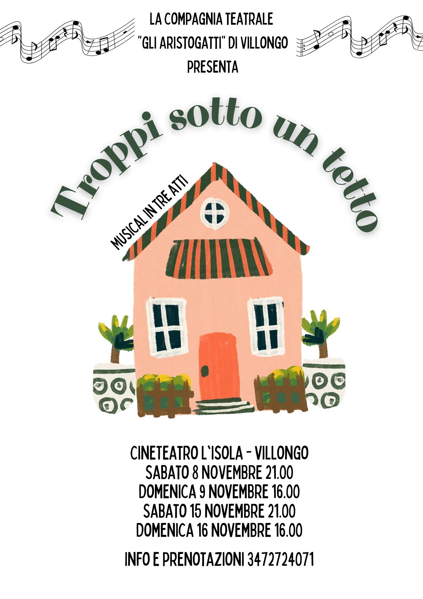 On Saturday, November 8th, at 9:00 pm, the musical “Too Many Under One Roof” will be performed at the CineTeatro L’Isola in Villongo, presented by the “Gli Aristogatti” theater company of Villongo.