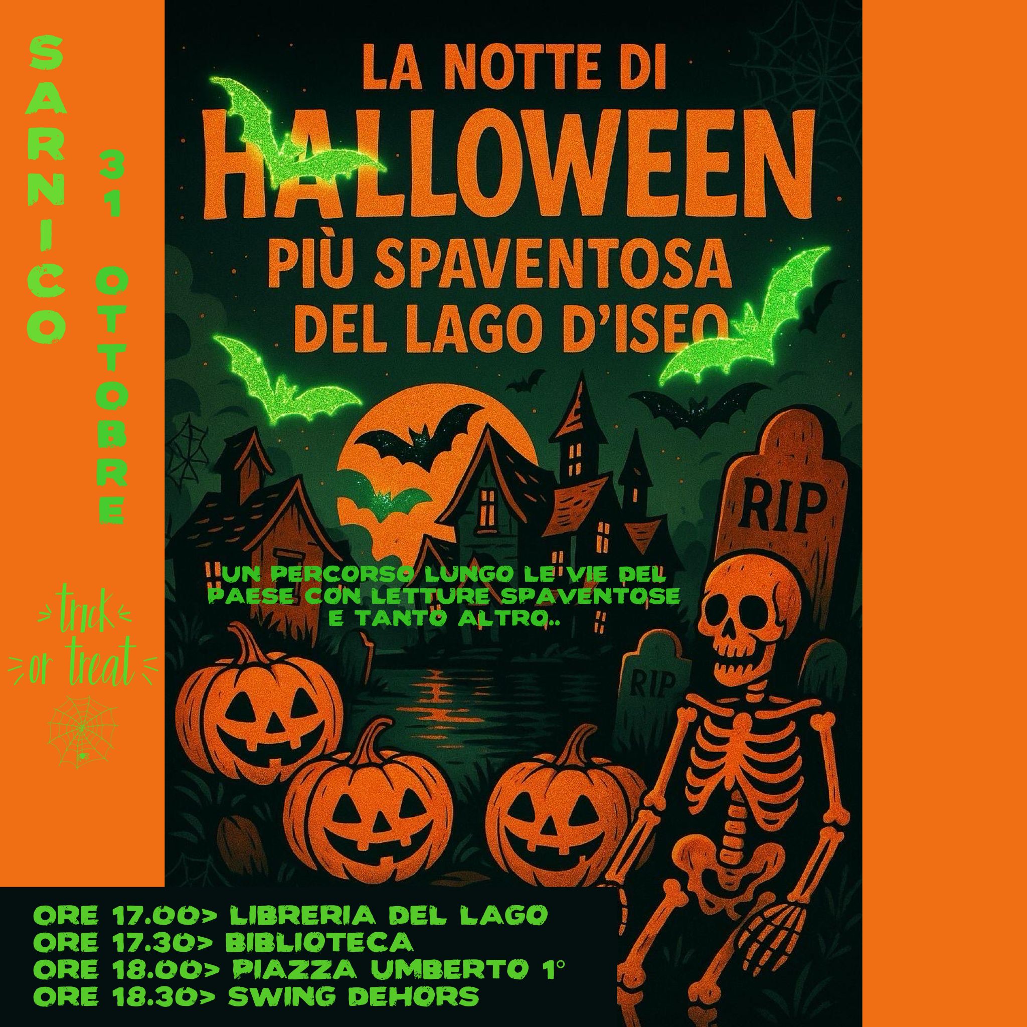On Friday, October 31st, “Halloween Night” will take place in the streets of Sarnico: a trail through the town with spooky readings and much more.