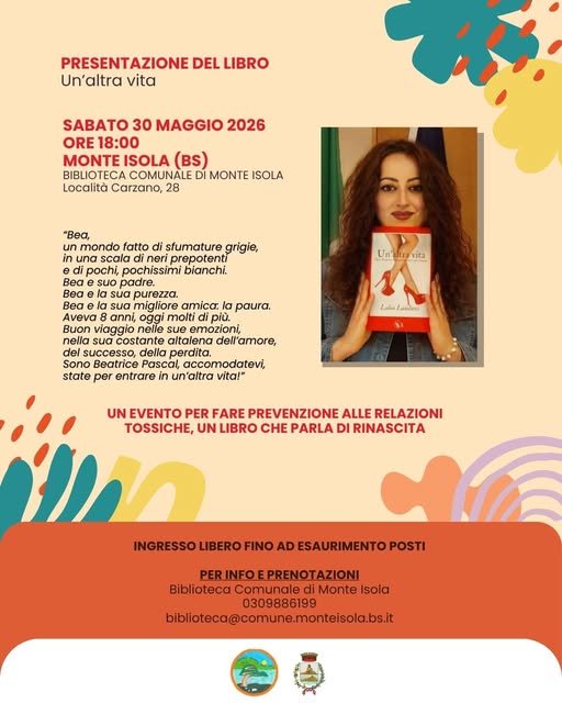On Saturday, May 30th, the Monte Isola Library will host a book presentation for “Un’altra vita” by Lidia Laudani.