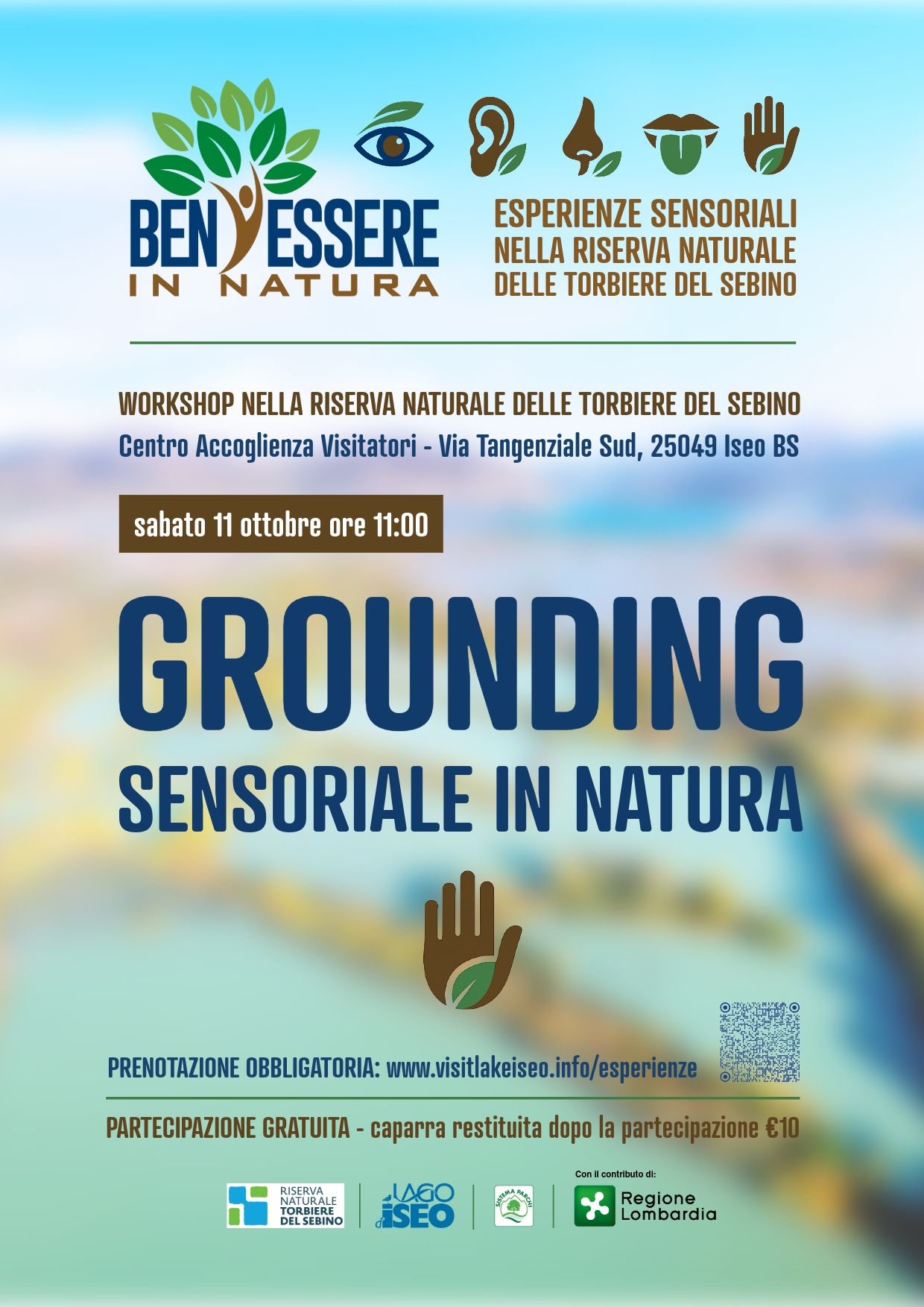 On Saturday, October 11th at 11 am with meeting point at the Visitors’ Centre of the Torbiere del Sebino Nature Reserve, a sensorial grounding workshop is scheduled, within the project “Ben-Essere in Natura, sensorial experiences in the Torbiere del Sebino Nature Reserve”.