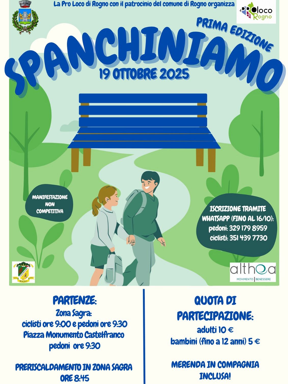 On Sunday 19 October 2025, the Pro Loco Rogno, with the sponsorship of the Municipality of Rogno, is organizing the first edition of the non-competitive “Spanchiniamo” event, a day of outdoor walking and cycling.