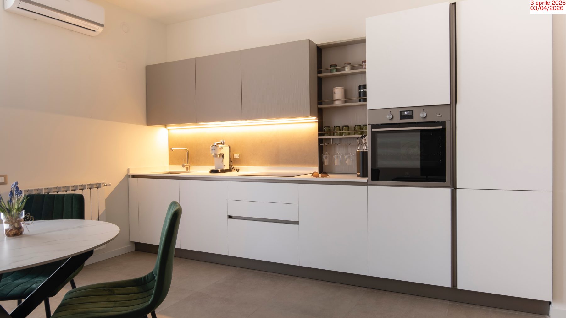 The apartment is rented, as shown in the photographs, complete with all appliances, air conditioning, Wi-Fi, and furnished with crockery, towels, and a welcome kit with shampoo and shower gel. There is also a fire extinguisher and a carbon monoxide detector, as required by current regulations. The furnishings are all new and of high quality, with designer pieces uncommon in rental properties, therefore we ask for proper care during your stay. Both in the bedroom and living room there are spacious 50-inch plasma smartTVs.