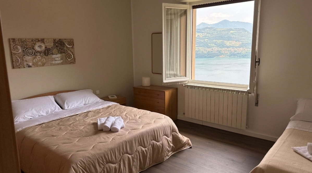 “La Vista” is a spacious, independent apartment located in a quiet area in the historic center of Cambianica, a hamlet of Tavernola Bergamasca. Just 1.5 km from the town center, the beach, the pier, and all shops, it boasts a breathtaking view of Lake Iseo and its three islands (Monte Isola, Loreto, and San Paolo).