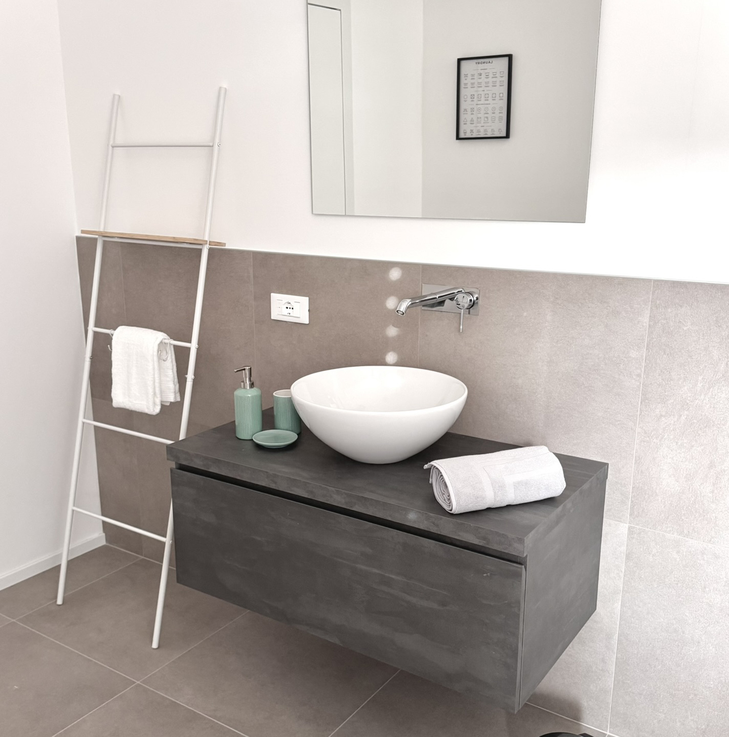 Pharmacies, bakeries, and supermarkets are just a few minutes’ walk away: here, you can truly forget about your car. On the first floor (with elevator): double bedroom, modern bathroom with walk-in shower and washing machine, and a bright living area with fast Wi-Fi, TV, table for four, and a sofa bed (18 cm high mattress). The kitchen is equipped with an induction stove, oven, fridge/freezer, dishwasher, and dishes. Fresh spaces and colorful accents create a simple and relaxing atmosphere. Plus: large terrace with two armchairs and a coffee table (perfect for breakfast or aperitifs).