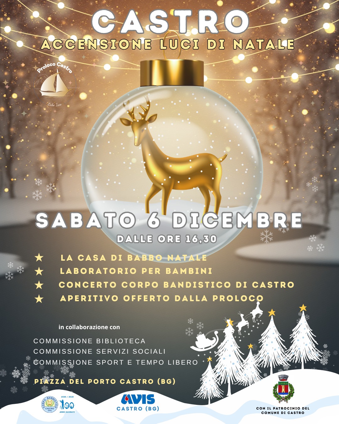 Sabato 6 dicembre 2025, dalle ore 16:30, la Pro Loco di Castro in collaborazione con la Commissione Biblioteca, Servizi Sociali, Sport e tempo libero organizza un pomeriggio ricco di iniziative: