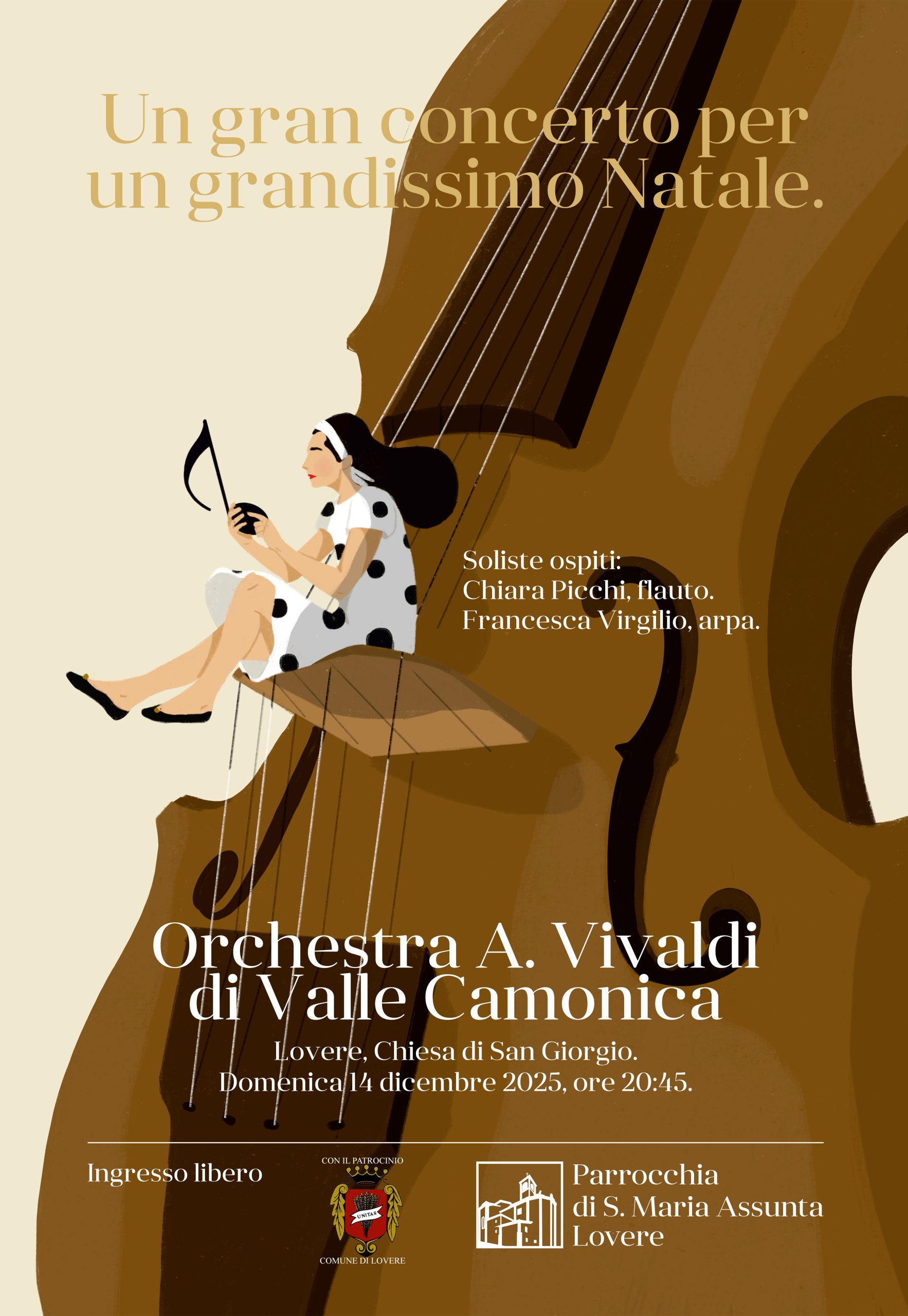 Lovere si prepara ad accogliere un appuntamento musicale di grande prestigio: domenica 14 dicembre 2025, alle ore 20:45, nella suggestiva cornice della Chiesa di San Giorgio, l’Orchestra “A. Vivaldi” di Valle Camonica offrirà al pubblico un coinvolgente concerto natalizio, fortemente voluto dal Direttore Concertatore, M° Silvio Maggioni e dal Presidente, dott. Mario Conti, con l’intento di regalare a Lovere un evento musicale di alto profilo, con protagonisti di fama internazionale.