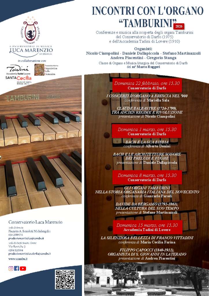 A seguire, si terrà il concerto per organo nel Salone dei Concerti (ingresso da via Tadini 40) deidcato alla figura e alle opere di Filippo Capocci (1840-1911), organista in S. Giovanni in Laterano a Roma tra Ottocento e Novecento.