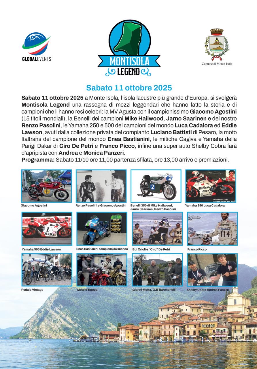 Sabato 11 ottobre a Monte Isola si terrà Montisola Legend, una rassegna di mezzi leggendari che hanno fatto la storia e dei campioni che li hanno resi celebri.