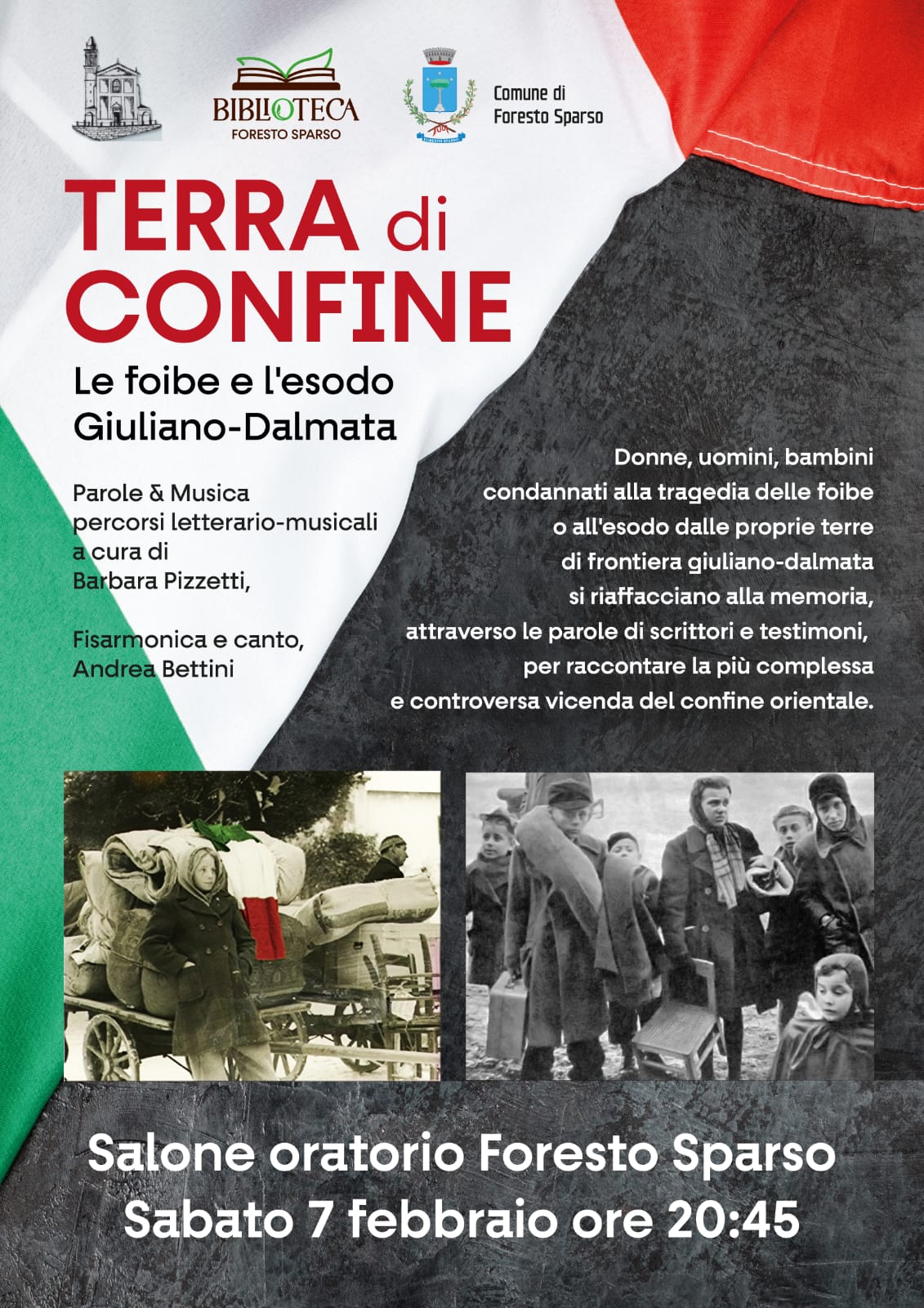 Sabato 7 febbraio, alle ore 20:45, si terrà l’incontro “Terra di Confine – Le foibe e l’esodo Giuliano – Dalmata” presso il salone dell’oratorio di Foresto Sparso.